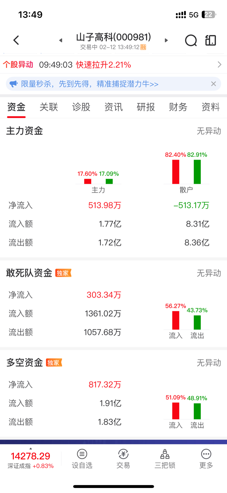 $山子高科(SZ000981)$ 散户流出8个多亿