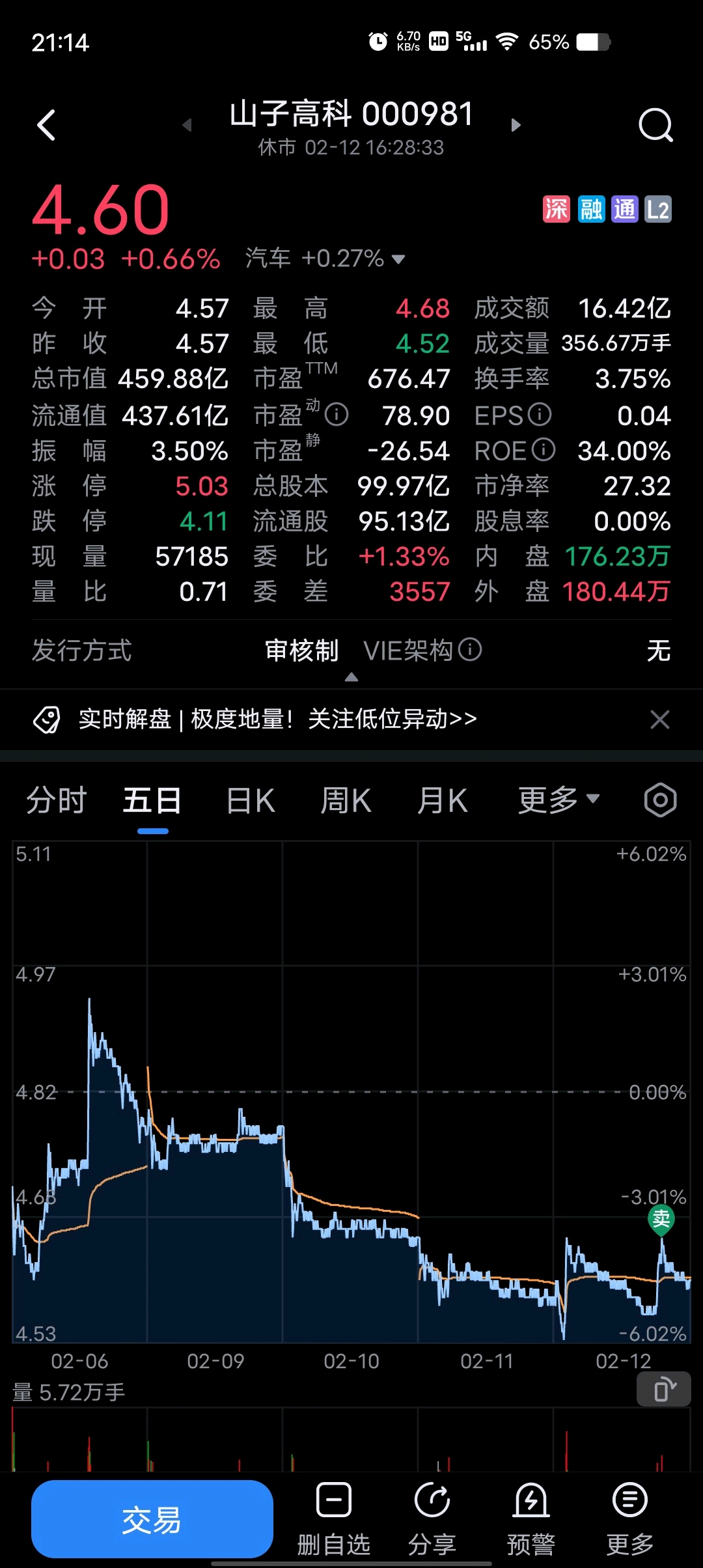 $山子高科(SZ000981)$ 再见!!!