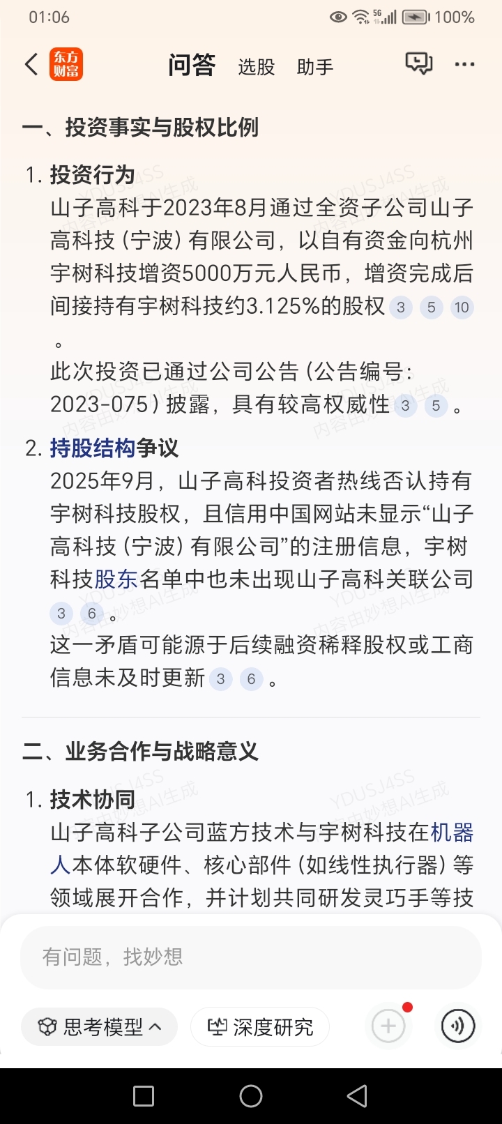 到底有没有直接或间接持有宇树股权?
