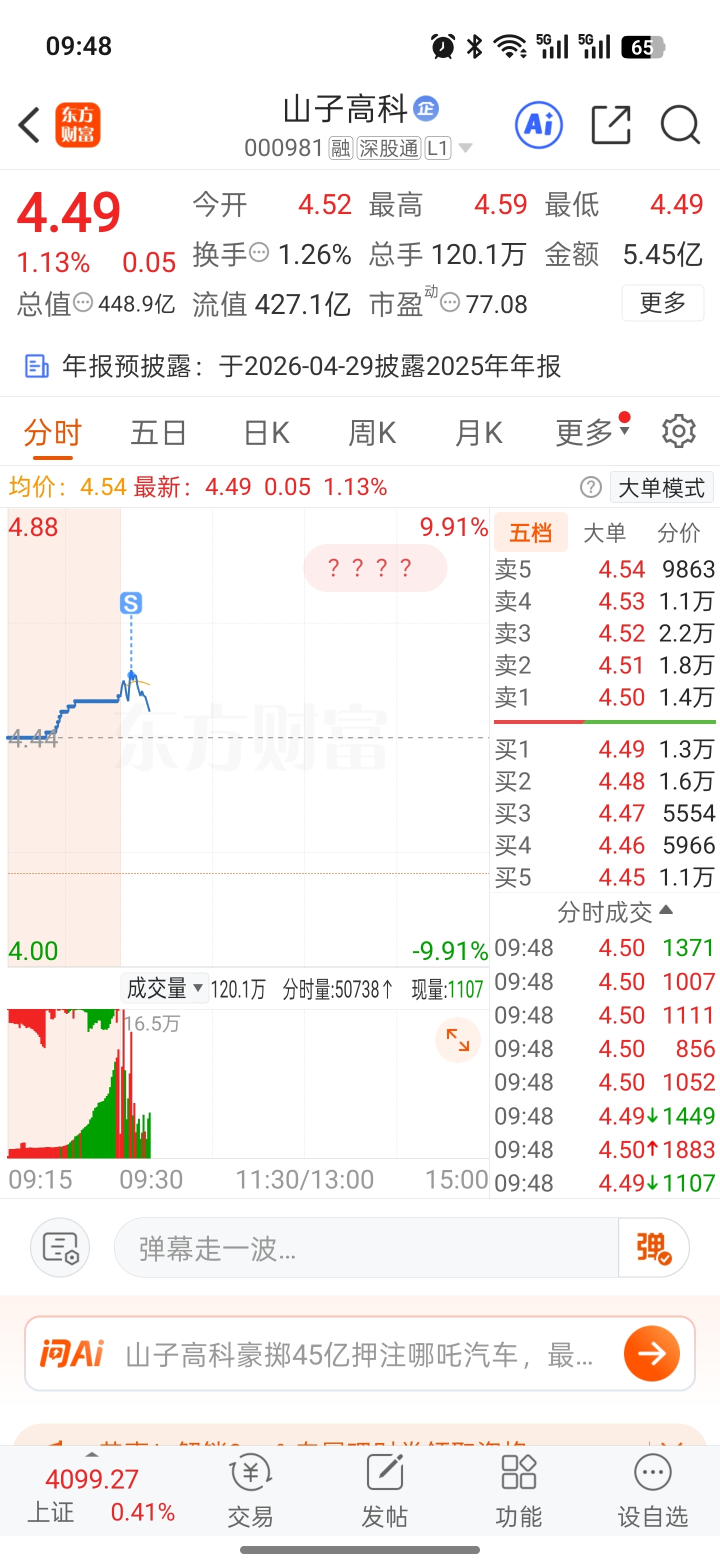 $山子高科(SZ000981)$ 早上冲高跑了一半,下午看看啥时候接回来