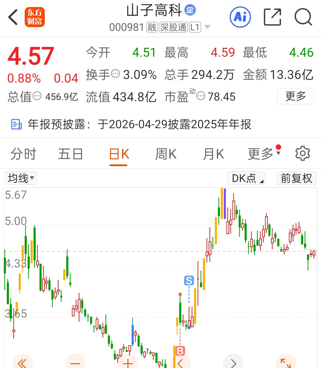 $山子高科(SZ000981)$ 当初第一次炒股差点给我发财了,十万全仓,现在剩四万了