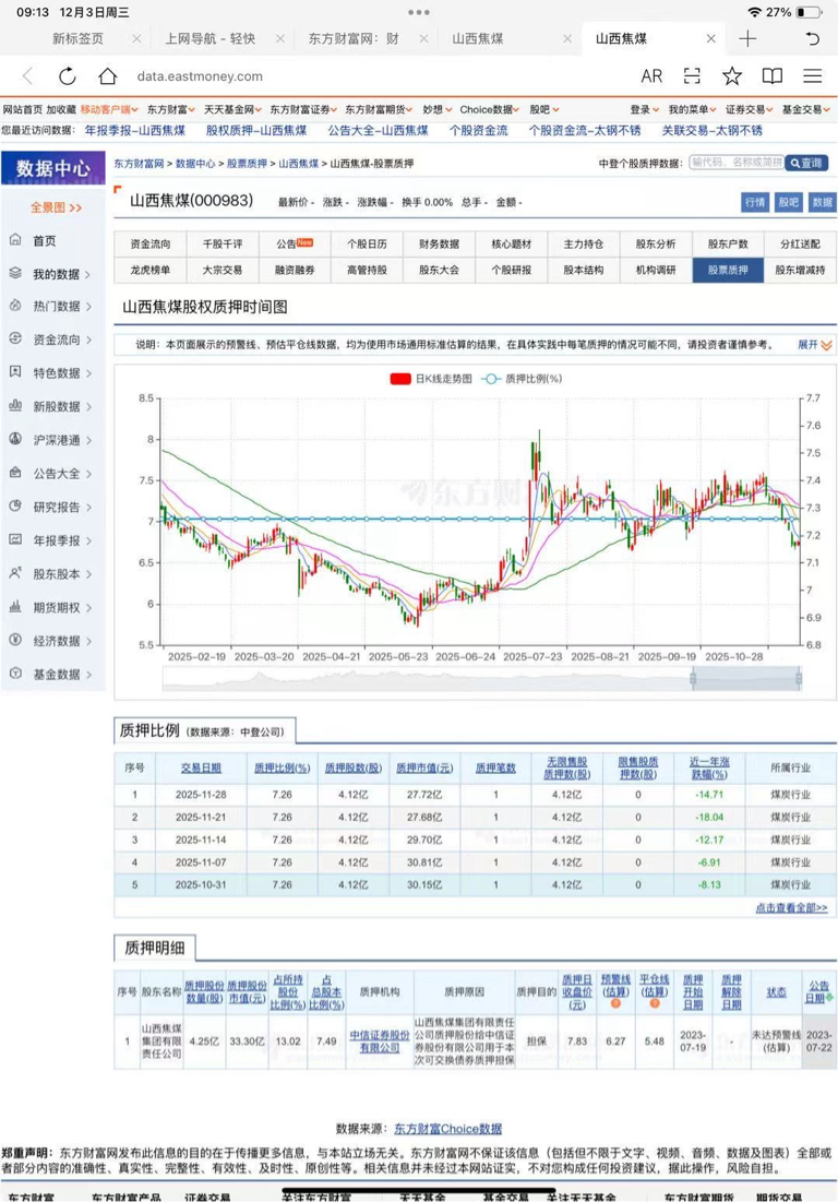 $山西焦煤(sz000983)$ 这只向中信证券质押股票