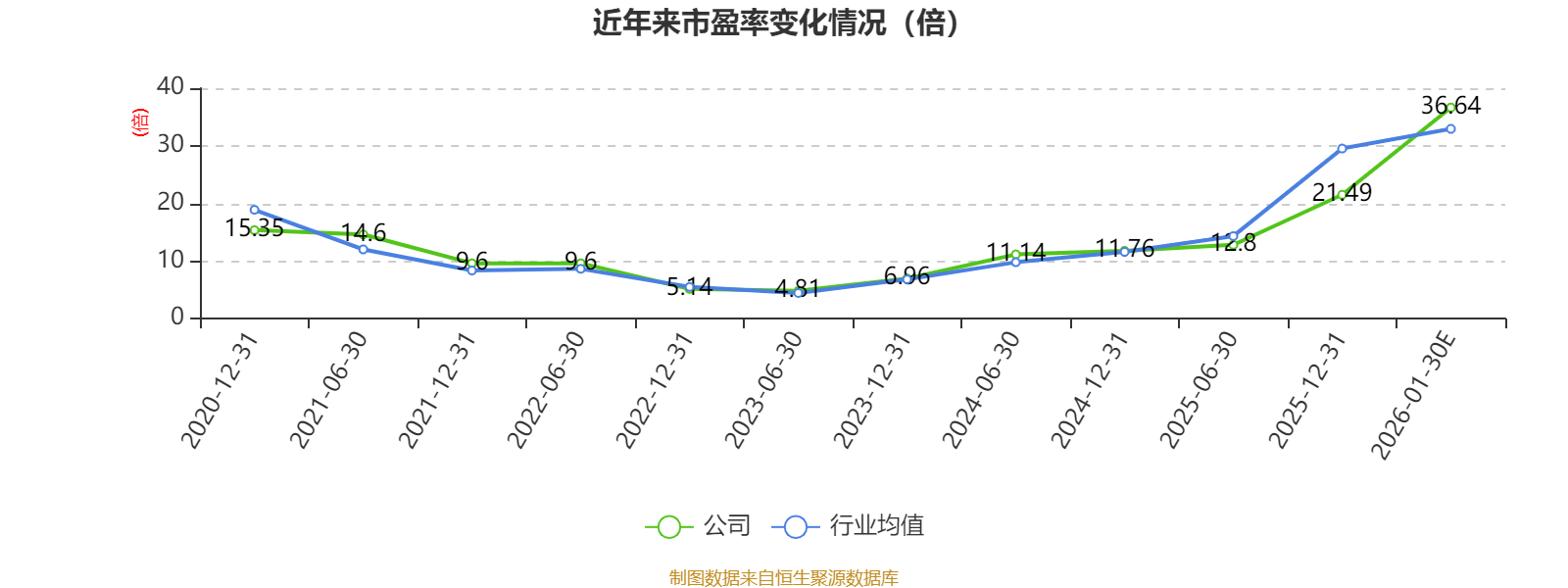 以本次披露业绩预告均值计算,公司近年市盈率(TTM)图如下所示: