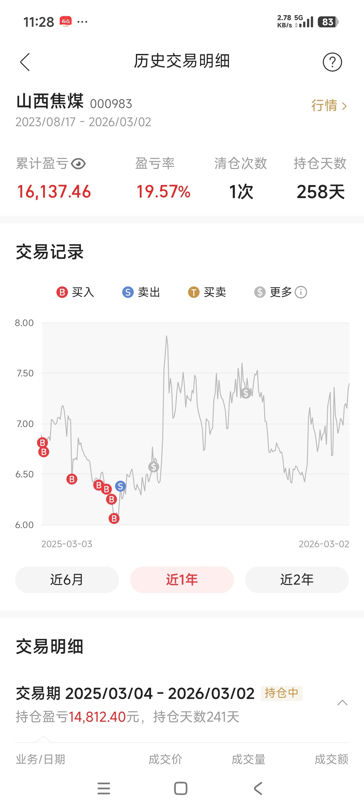 $山西焦煤(SZ000983)$ 嘿嘿嘿,幸亏我跑了6.19的本,7.55卖的
