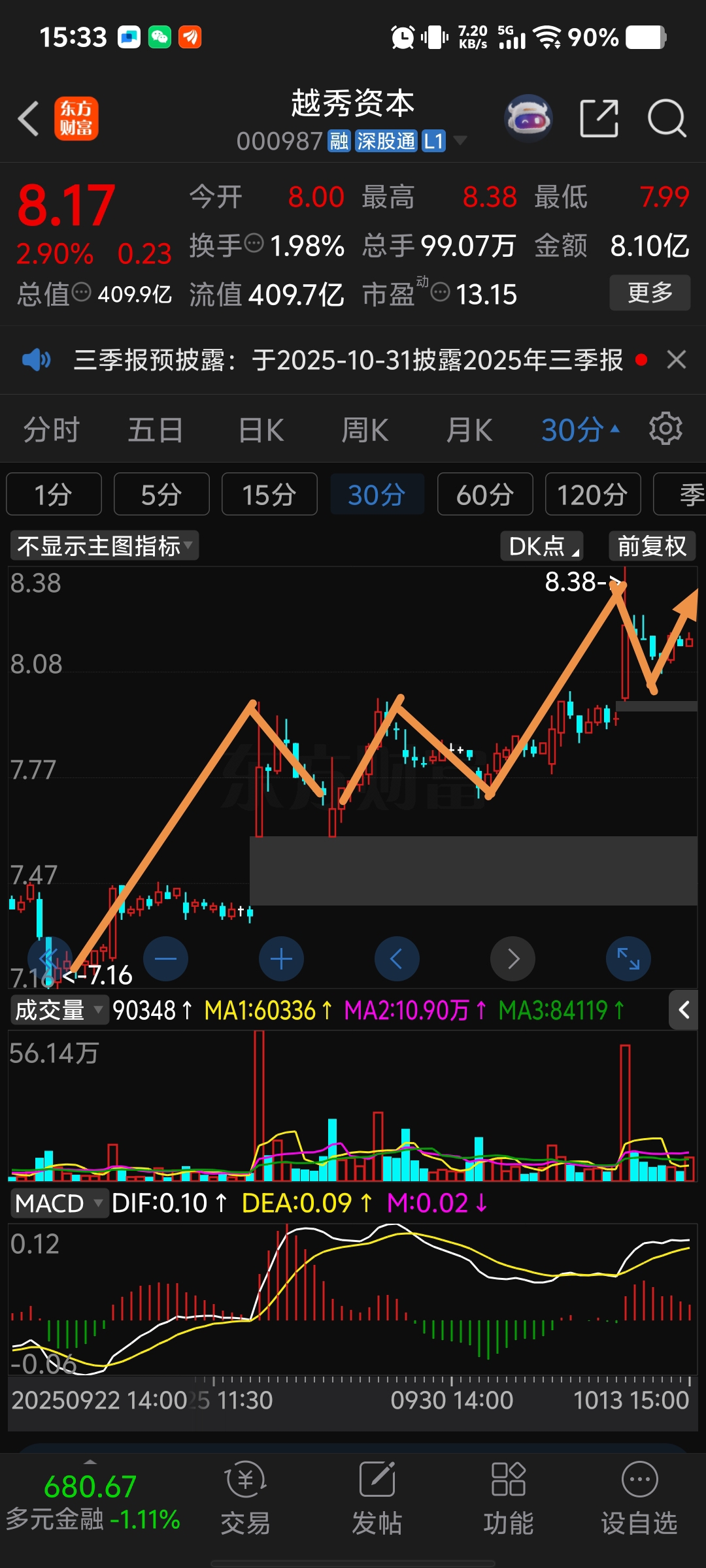 $越秀资本(SZ000987)$ 386看过来,好好学点技术,这是典型的30分钟3买图形,明天买盘赶紧满上