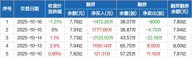 越秀资本:融资净偿还1413.26万元,融资余额7.76亿元(10-16)