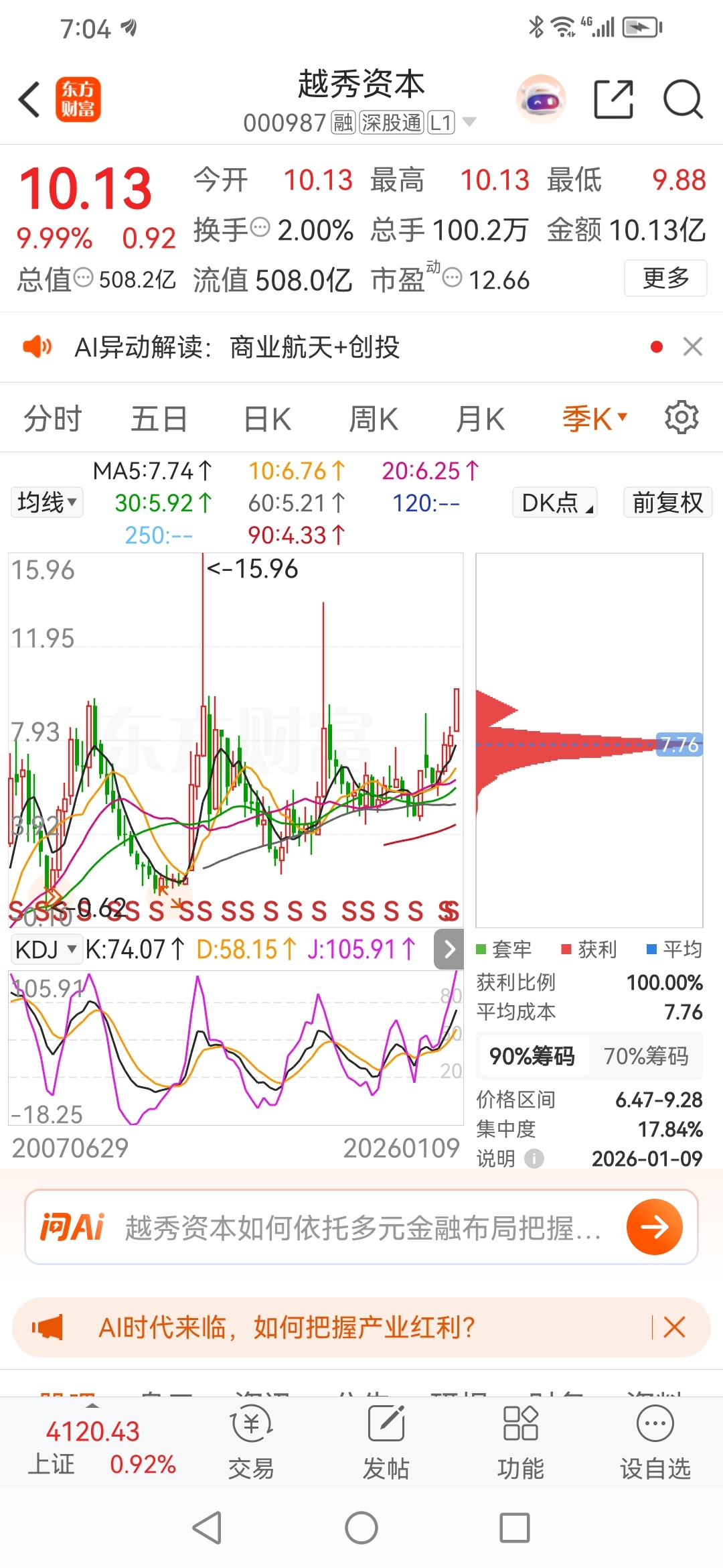 $越秀资本(SZ000987)$ 这是季线图,能看出什么