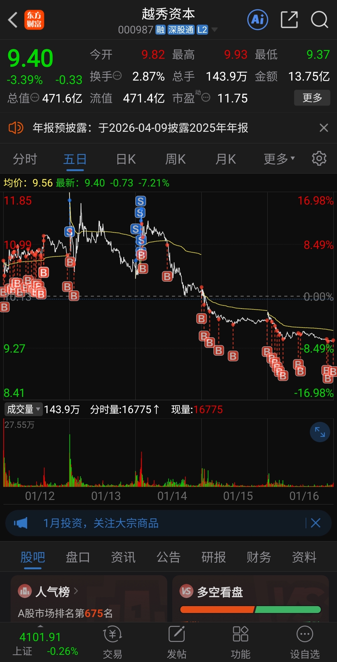 $越秀资本(SZ000987)$ 我怕你个锤子