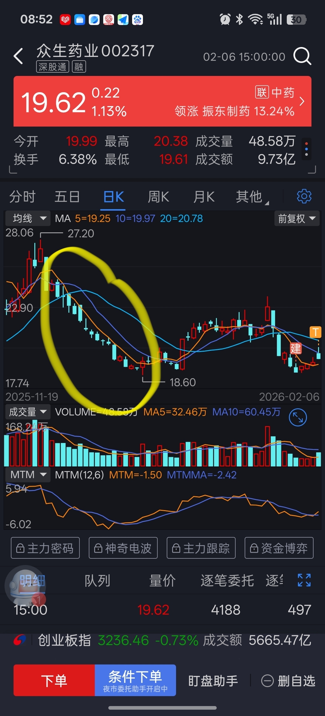只是觉得黄线圈住的内圈内K线,与现在的越秀有点像,所以关注了这只股票,不知道通过