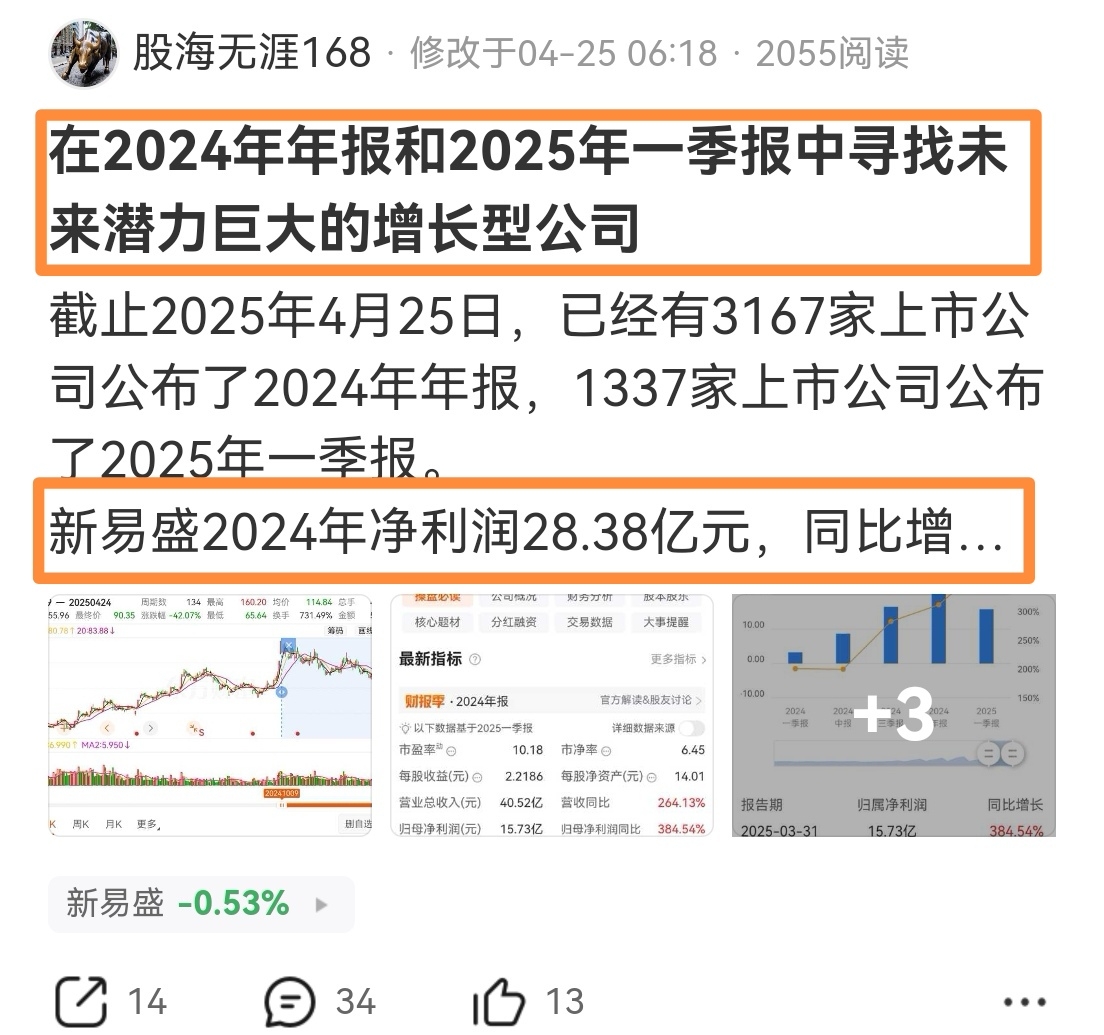 2025年4月25日开盘前推荐了新易盛。之后又写数篇文章进行了推荐。推荐新易盛后,最大涨幅达498.85%,至9月26日的涨幅还有476.54%。感觉十分有幸!