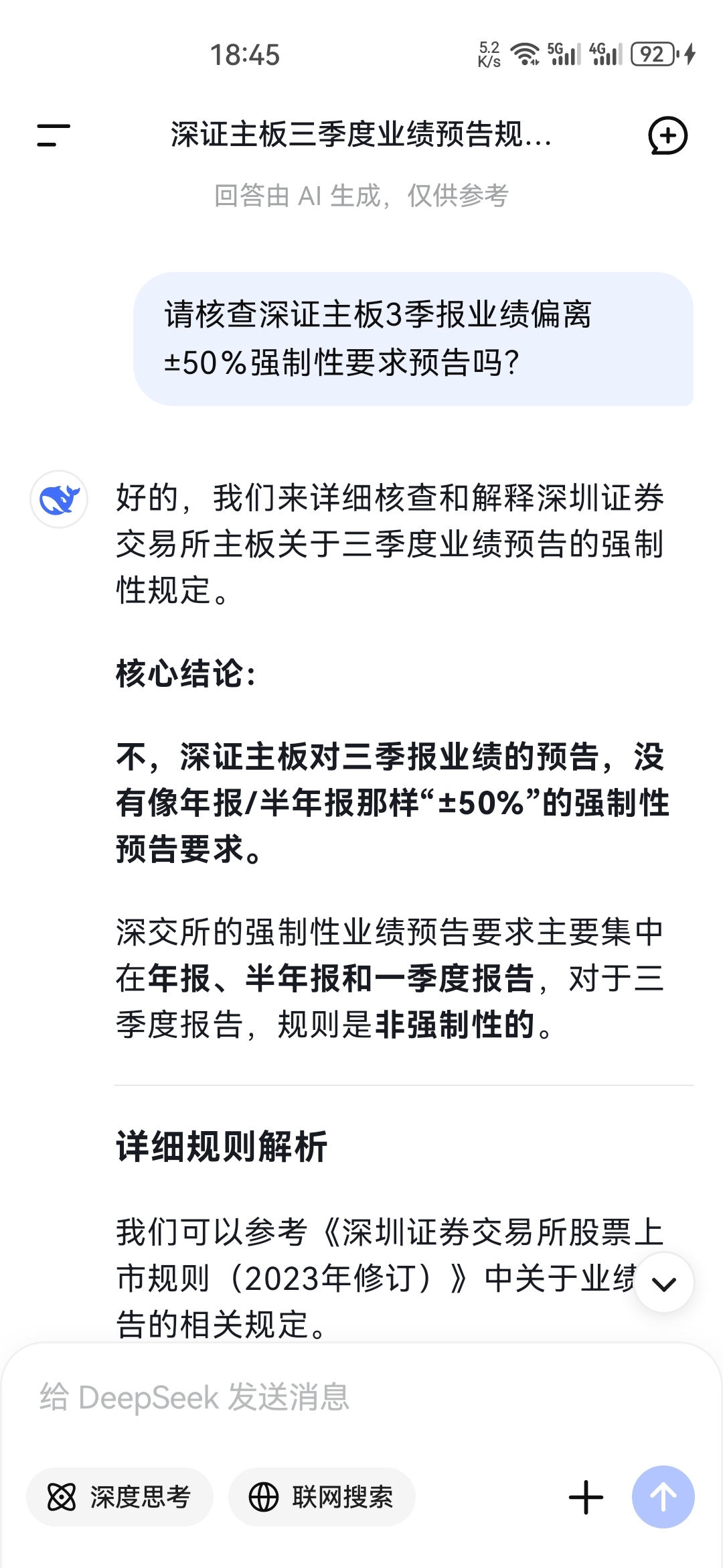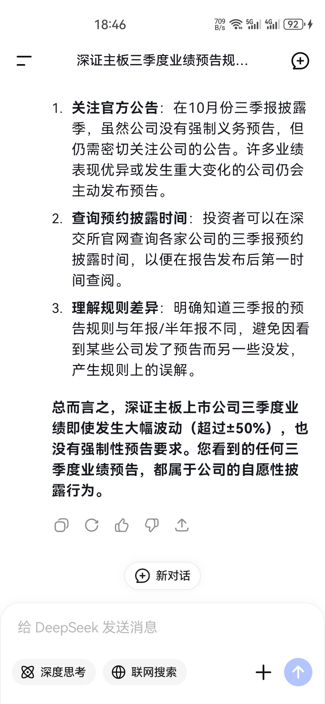 $华工科技(SZ000988)$ 请核查深证主板3季报业绩偏离±50%强制性要求预告吗?答:不要求!
