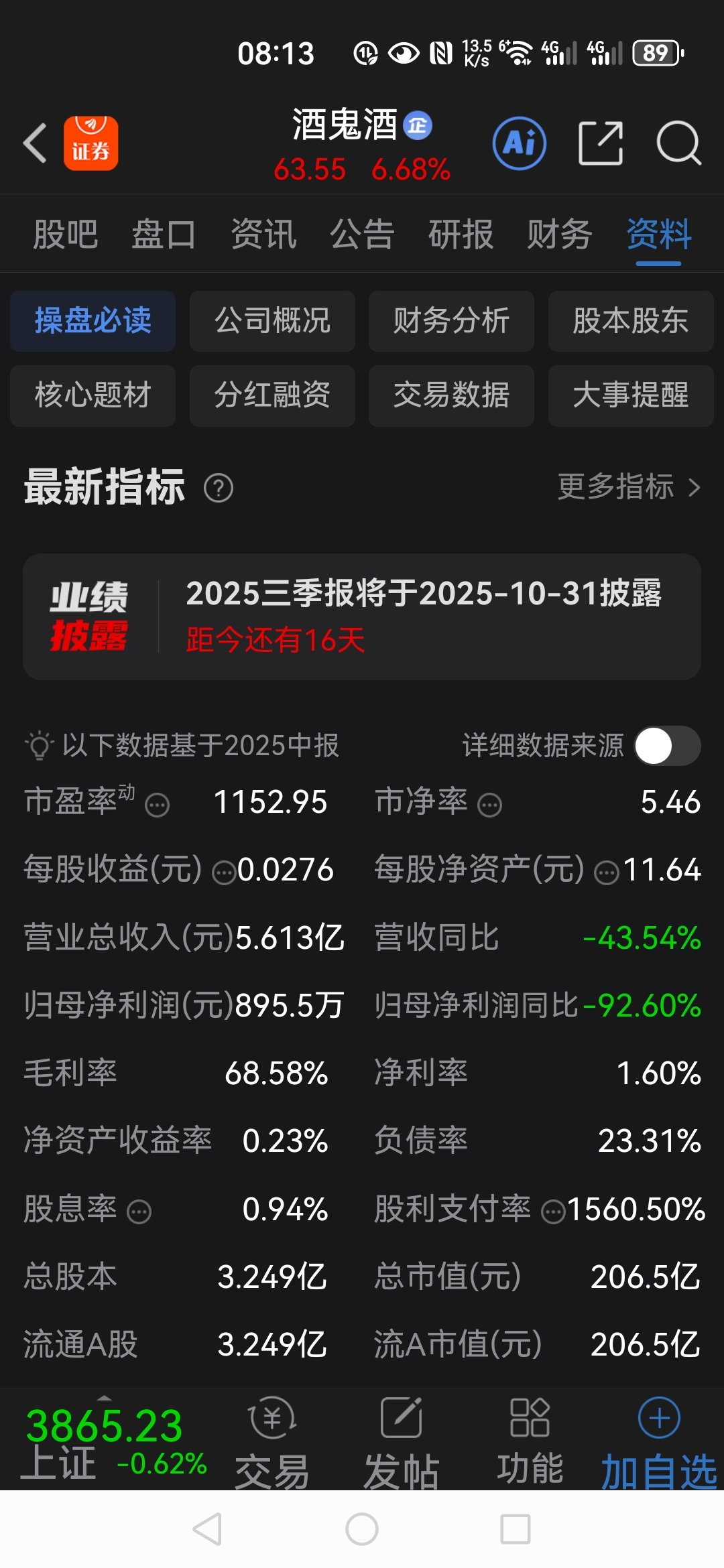 $华工科技(SZ000988)$ 相较于酒鬼酒你们还觉得华工科技市盈率高吗?