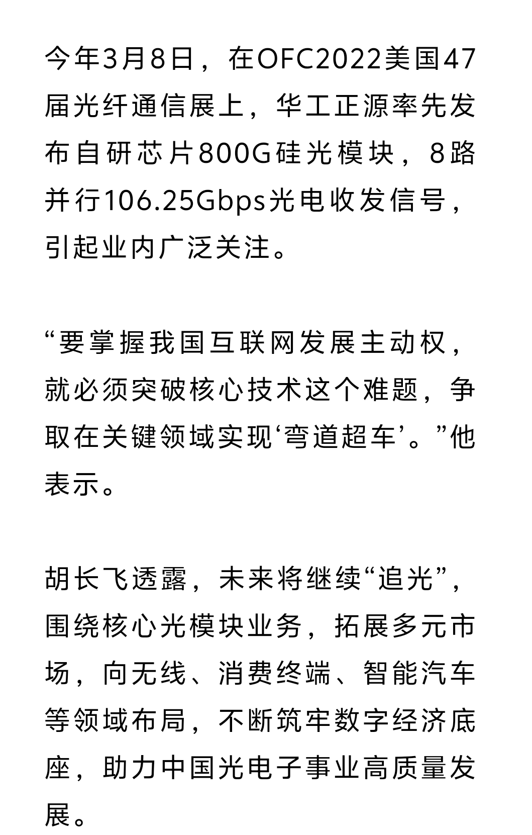 $华工科技(SZ000988)$ 牛皮大王,22年第一个发布800G,结果到现在还主要在做400G光模块。什么东西都最先发布,结果没人认可,急功近利。不符合工匠精神!
