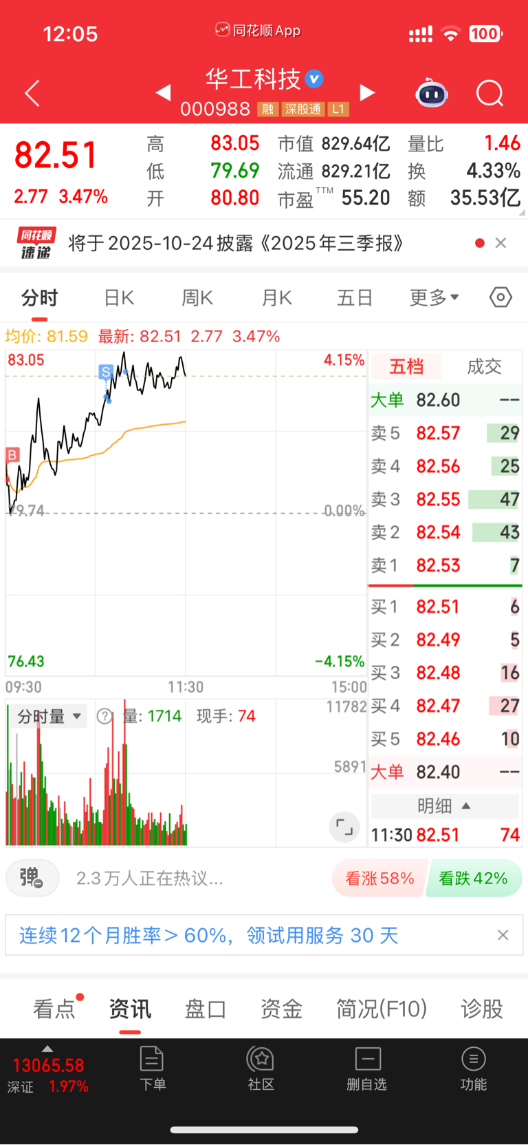 二千亿下,绝不出局!厂长发帖只为自己记录,请勿参考!$华工科技(SZ000988)$