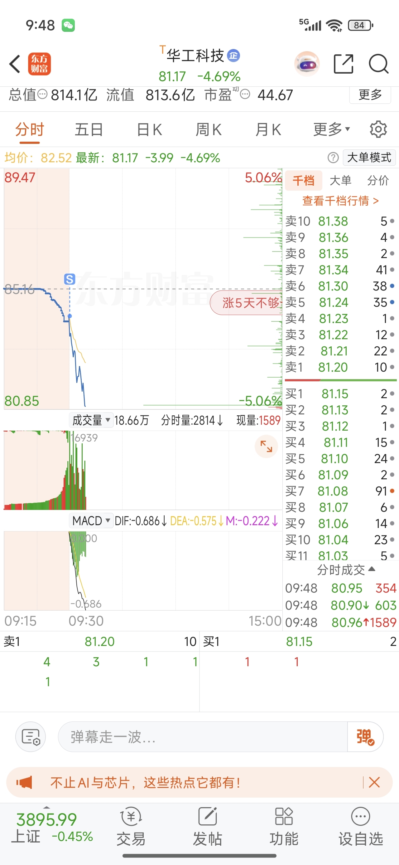 $华工科技(SZ000988)$ 88,涨5天不够一天跌的牛市。主力,ai知道你们在赌明天的业绩。