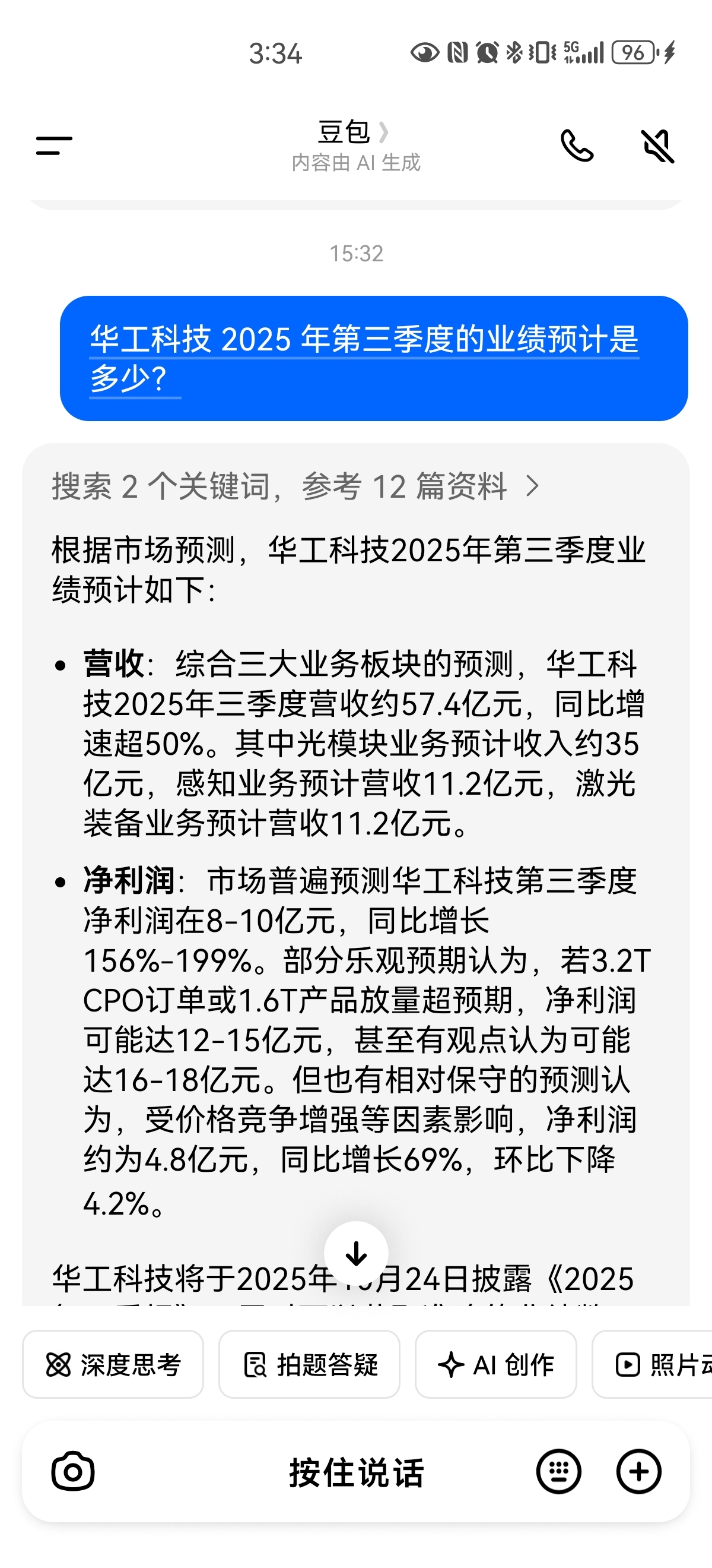 $华工科技(SZ000988)$ 豆包预测的第三季度业绩