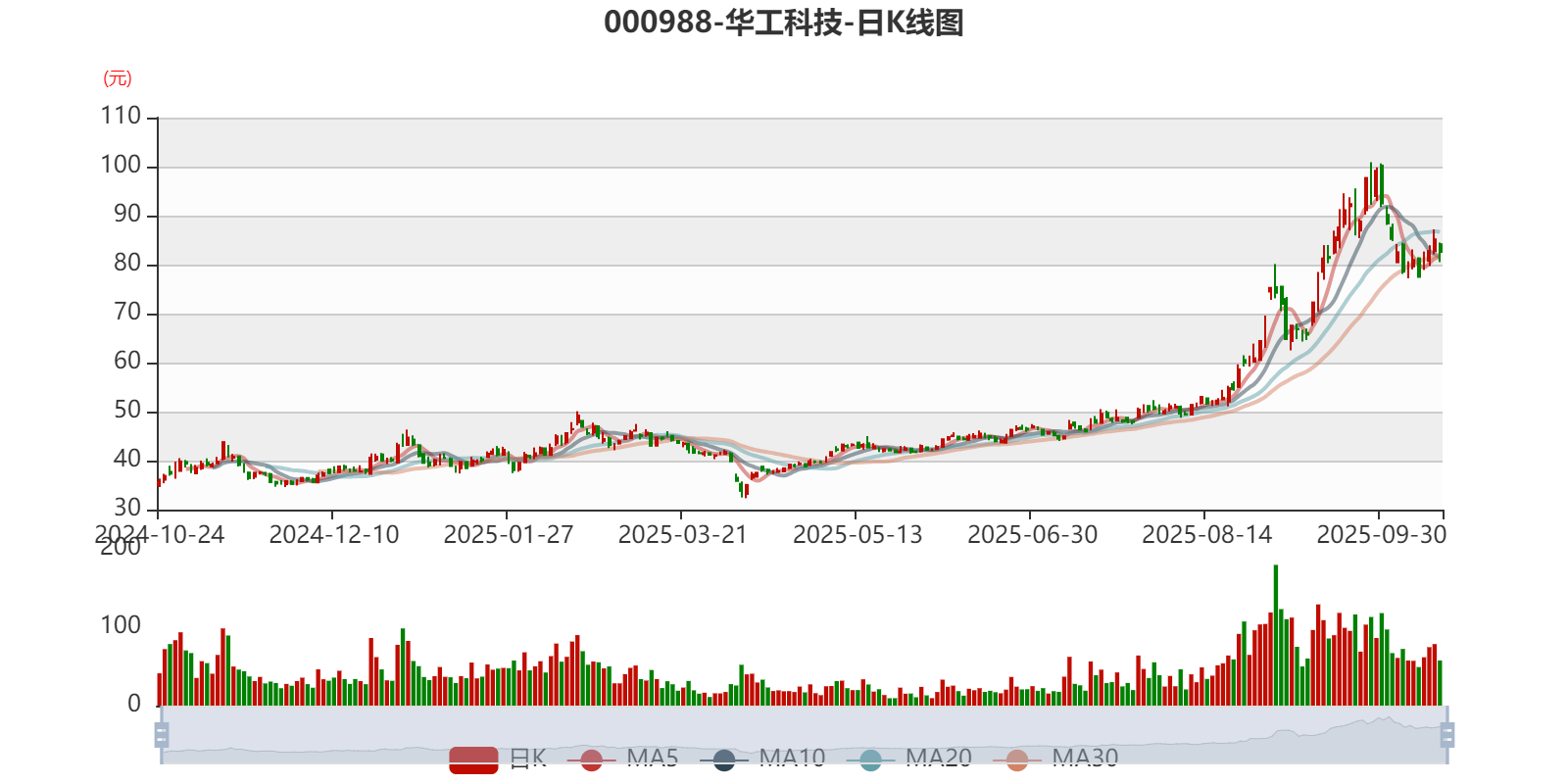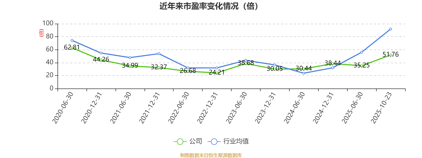 以10月23日收盘价计算,华工科技目前市盈率(TTM)约为51.76倍,市净率(LF)约7.62倍,市销率(TTM)约6.04倍。