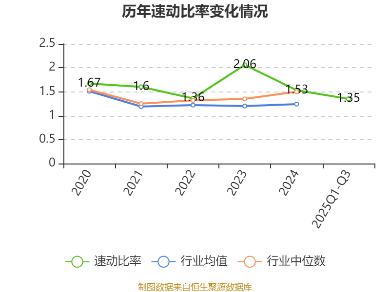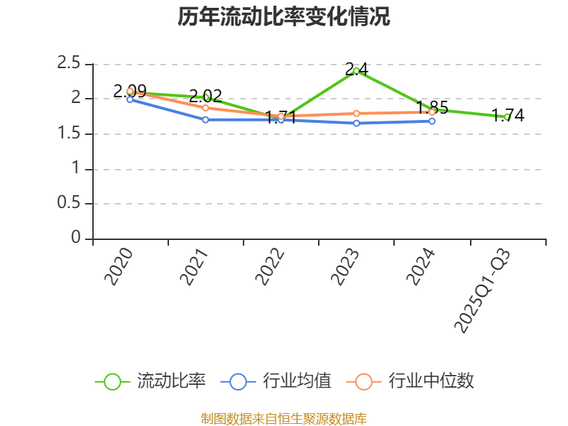 2025年前三季度,公司流动比率为1.74,速动比率为1.35。