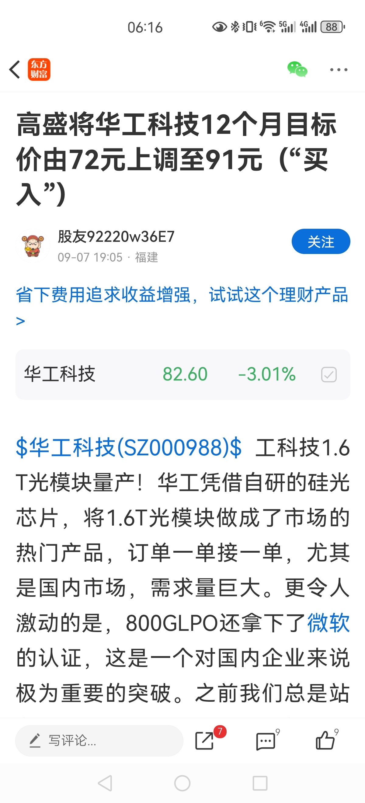 高盛知行合一呀,看好华工科技,立马自己买成了10大股东