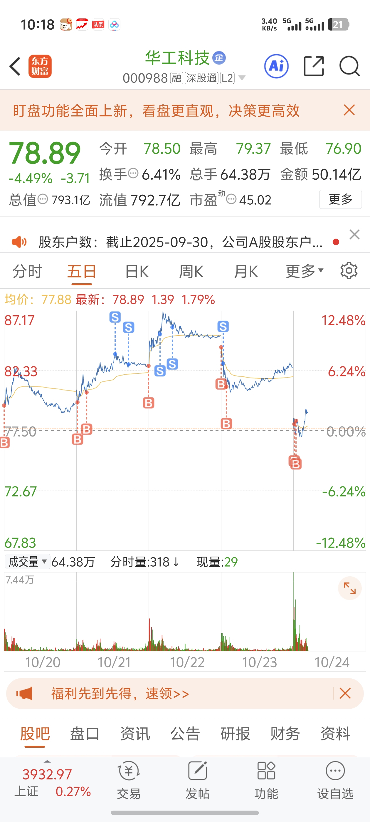 $华工科技(SZ000988)$ 玩了几天的利润给我跌没了