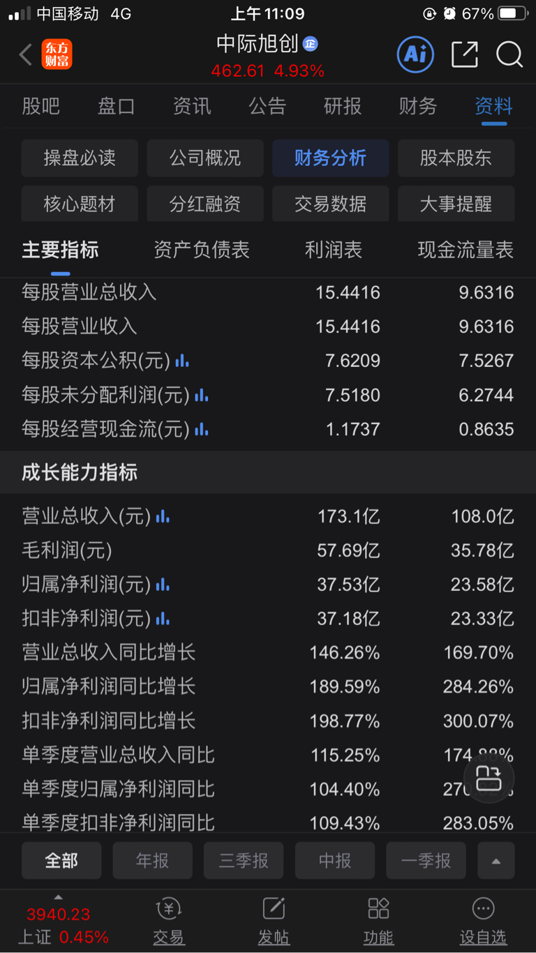 中际旭创去年中报业绩增速回落,后股价涨了6倍