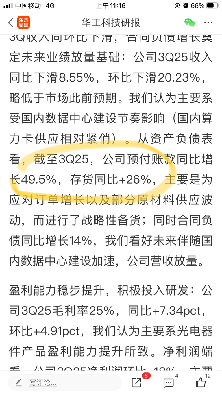 $华工科技(SZ000988)$ 华工科技业绩超预期,利润用于预支款,存货,研发费用