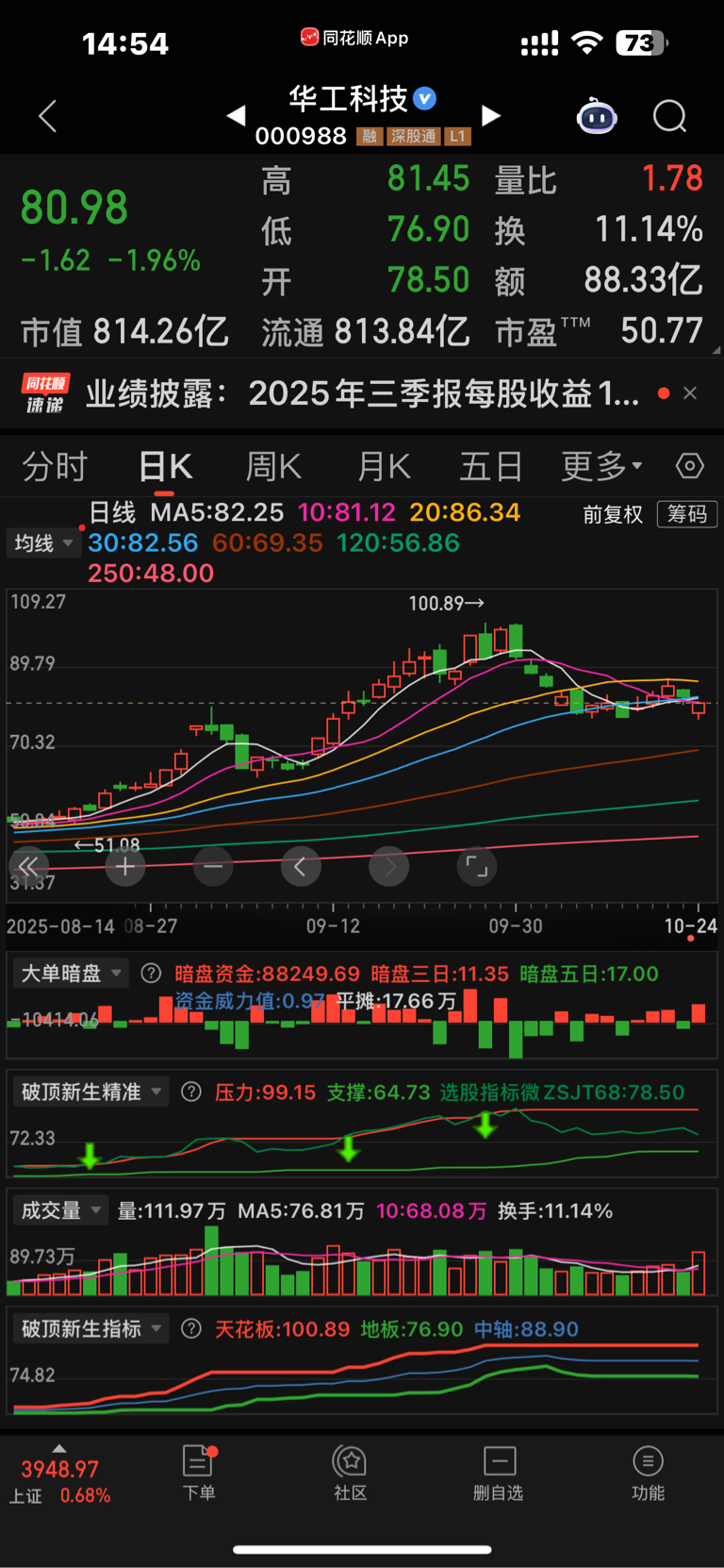 $华工科技(SZ000988)$ 暗盘流入资金这么多!留半仓等一下机会!