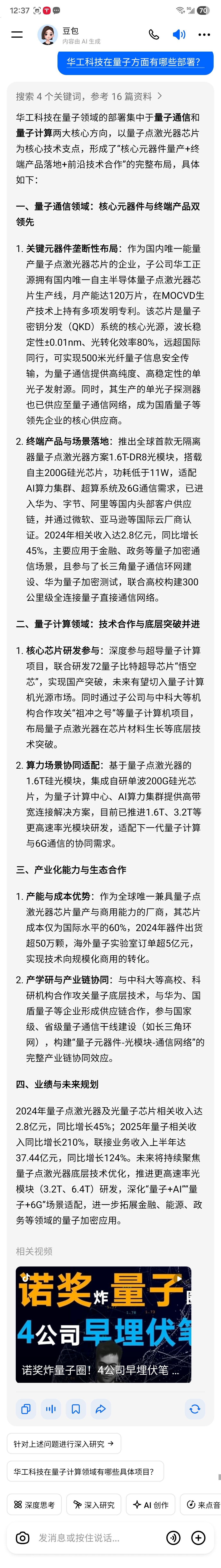 华工科技在量子方面的重大部署