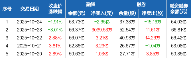 华工科技:融资净偿还2.65亿元,两市排名第六(10-24)