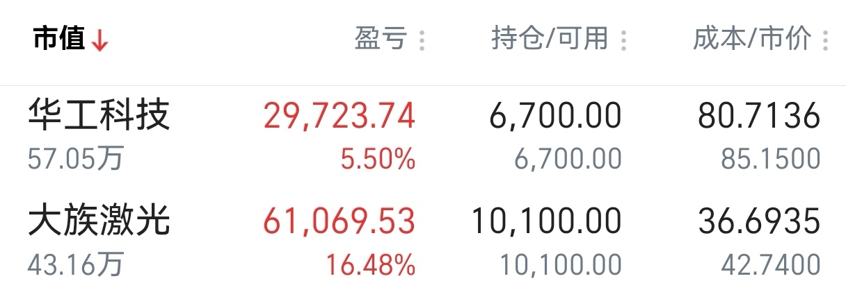 $华工科技(SZ000988)$ 我就知道不会轻易给我加仓降成本的机会了,看今天这样子明天还能红一下,t都不想t了