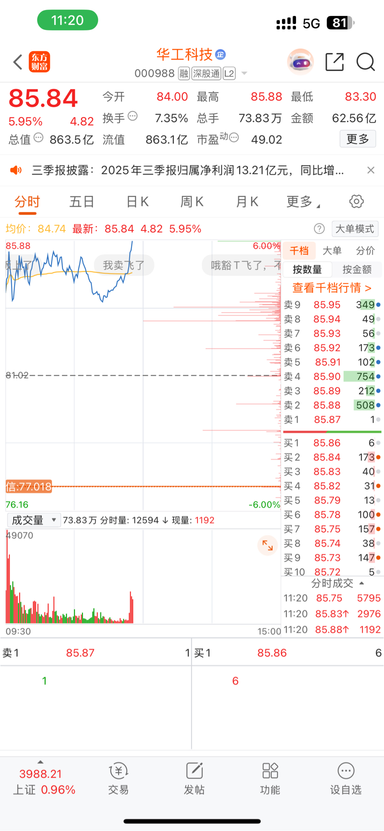 $华工科技(SZ000988)$ 有涨停迹象哦