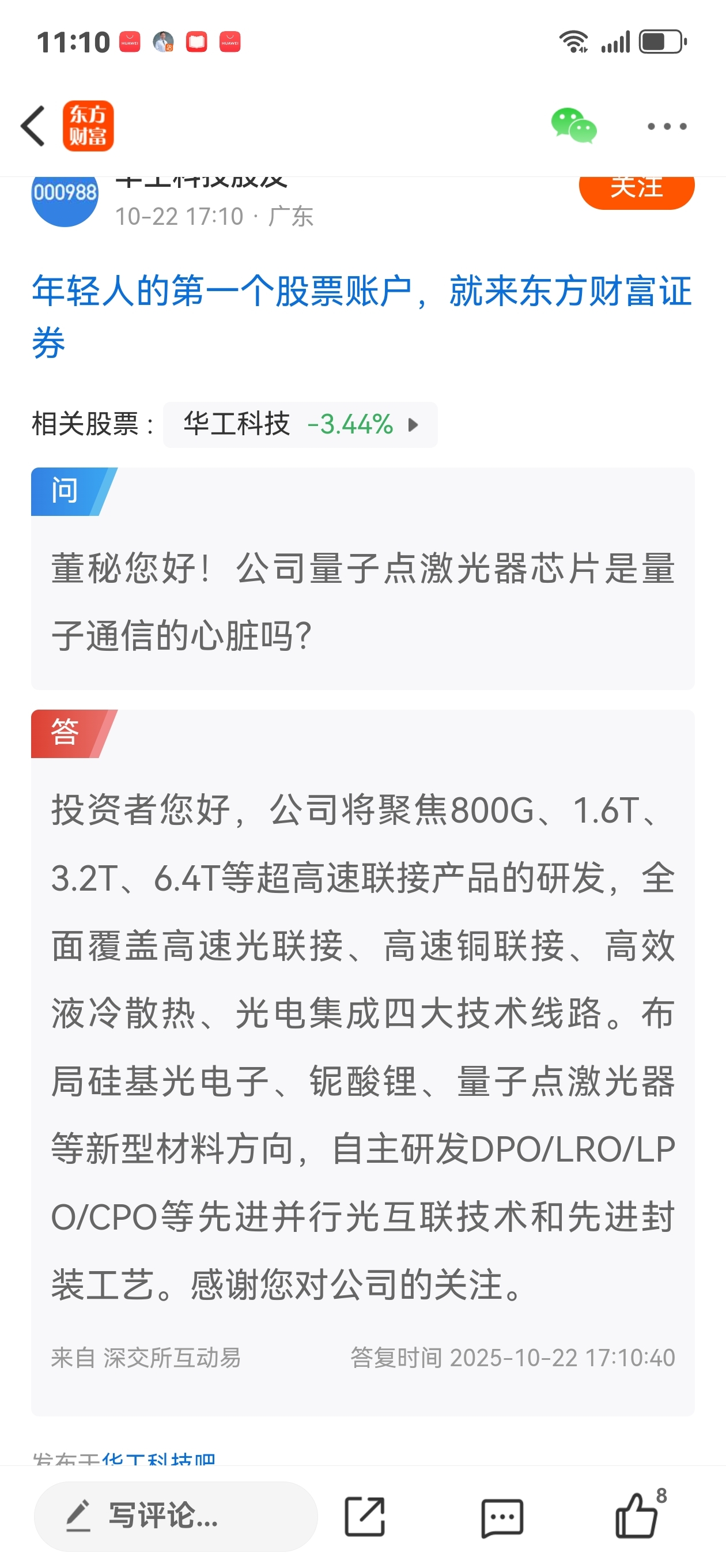 $华工科技(SZ000988)$ 为什么问到公司曾经引以为傲的量子点激光芯片的问题公司董秘总是答非所问。