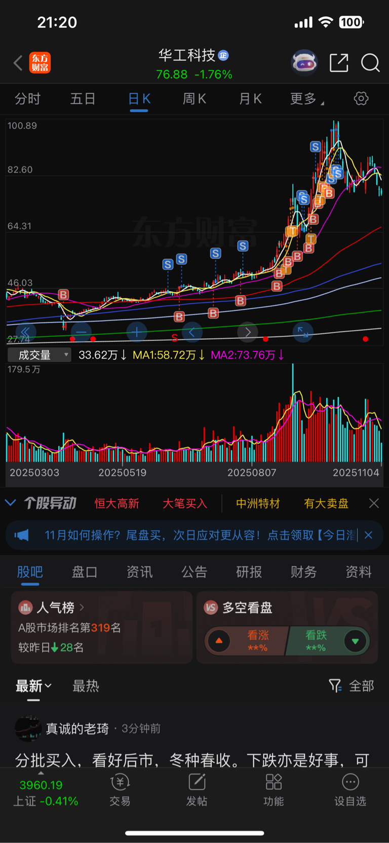 $华工科技(SZ000988)$ 外盘普跌,尤其是科技股,你大概率要回到65了,100清仓后一直没出手