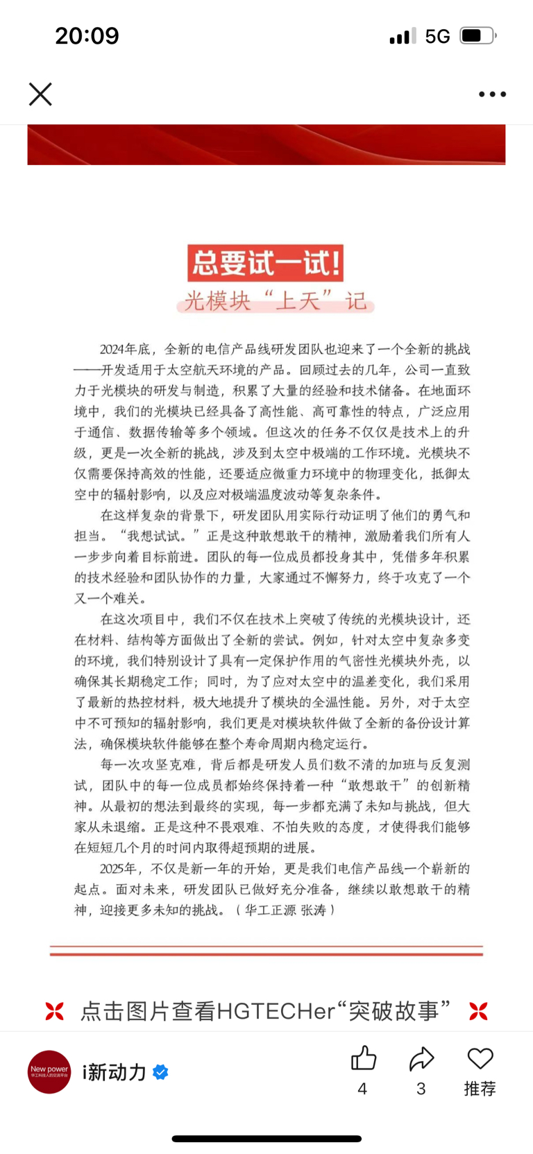 $华工科技(SZ000988)$ 国家要打造海陆空全空间无人体系,这是一个较新表述;其中一个就是太空算力,华工科技又来了,我都奇怪为什么你每次都能占据先发优势!