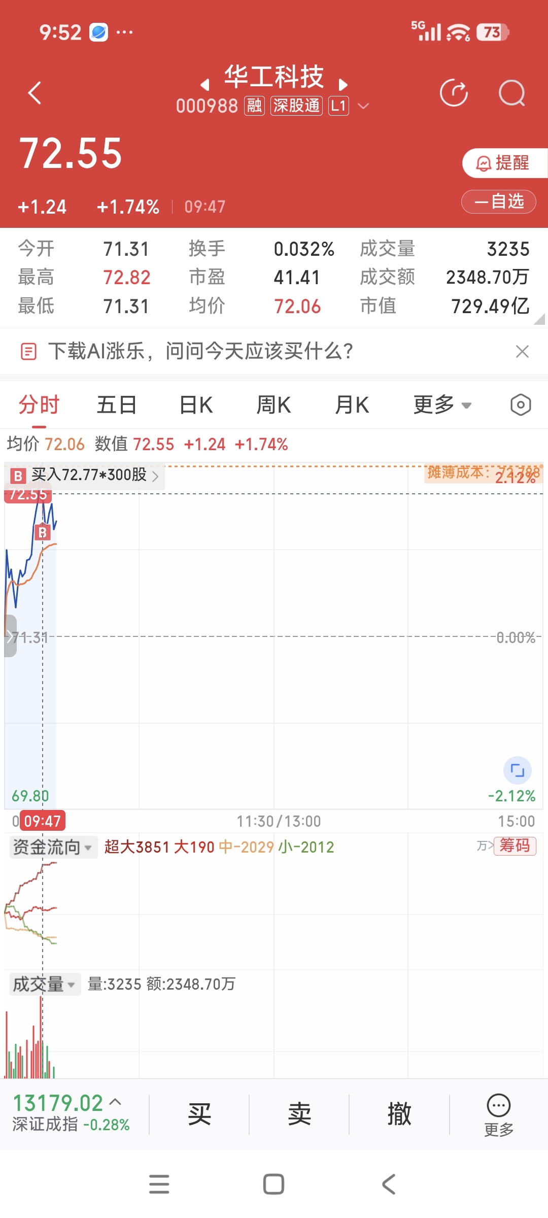 $华工科技(SZ000988)$ 又是被监控的一天刚买完一秒直接下来