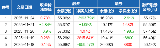 华工科技:融资净偿还3193.79万元,融资余额55.06亿元(11-24)