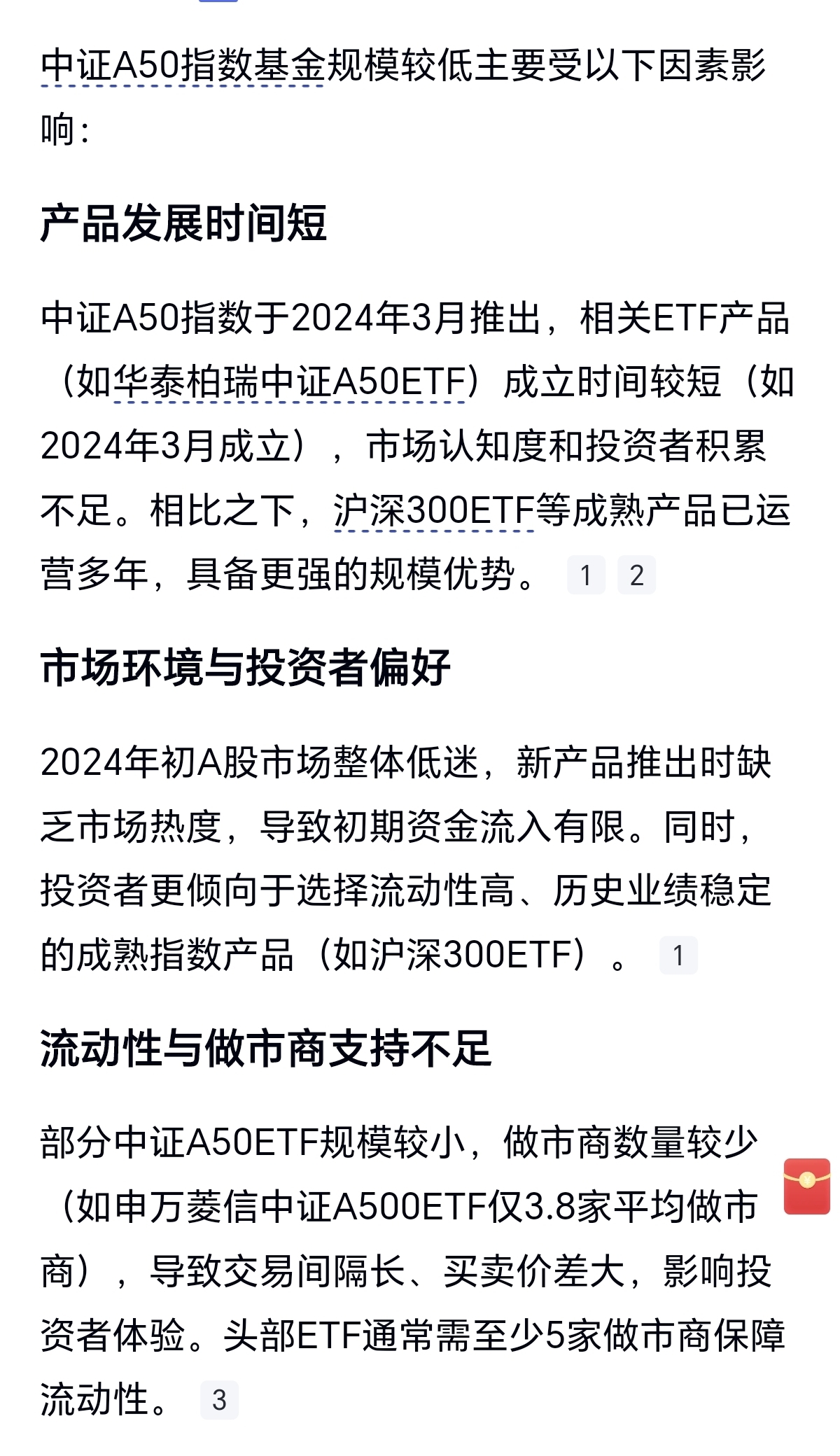 你们不要幻想了,整个中证A50指数,被动投资中证A50的ETF一直在减少,截止到11月底规模只有160多亿,而且每一天都在减少!