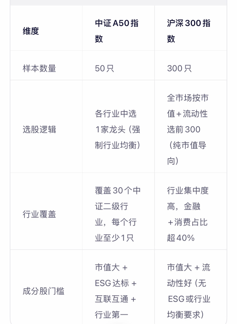 若只能选一个,对优质龙头而言,中证A50的“含金量”更高。