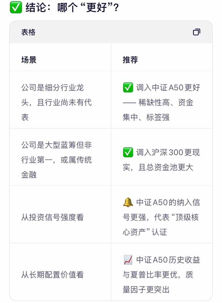 调入中证A50 = “行业冠军认证”,稀缺性强、资金效率高;
