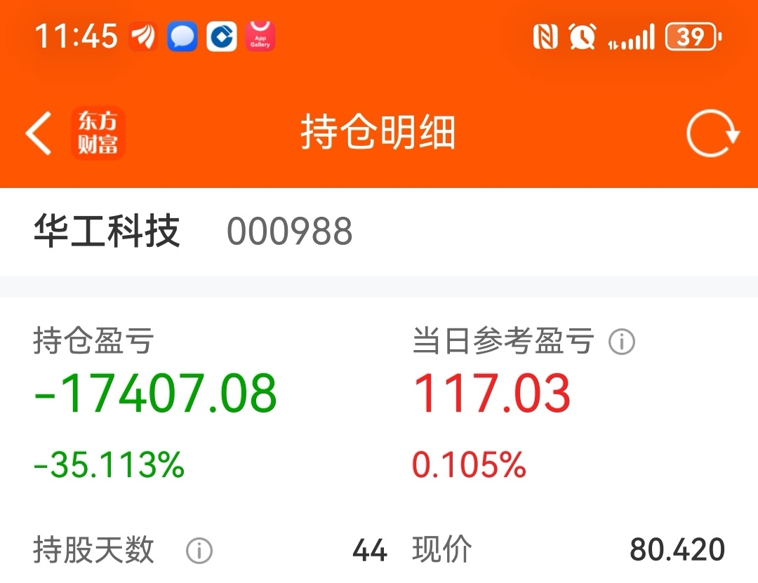 $华工科技(SZ000988)$ 留了500股你爱咋的咋的,我咋就买了你44天了还亏钱