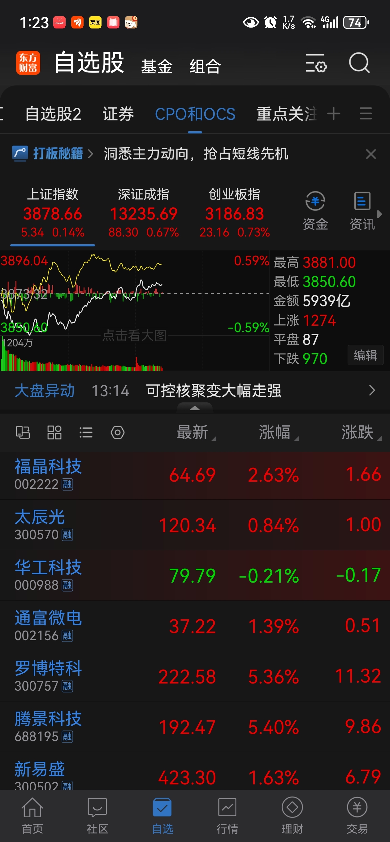 $华工科技(SZ000988)$ 公公你好意思吗,CPO除了你都红通通的!