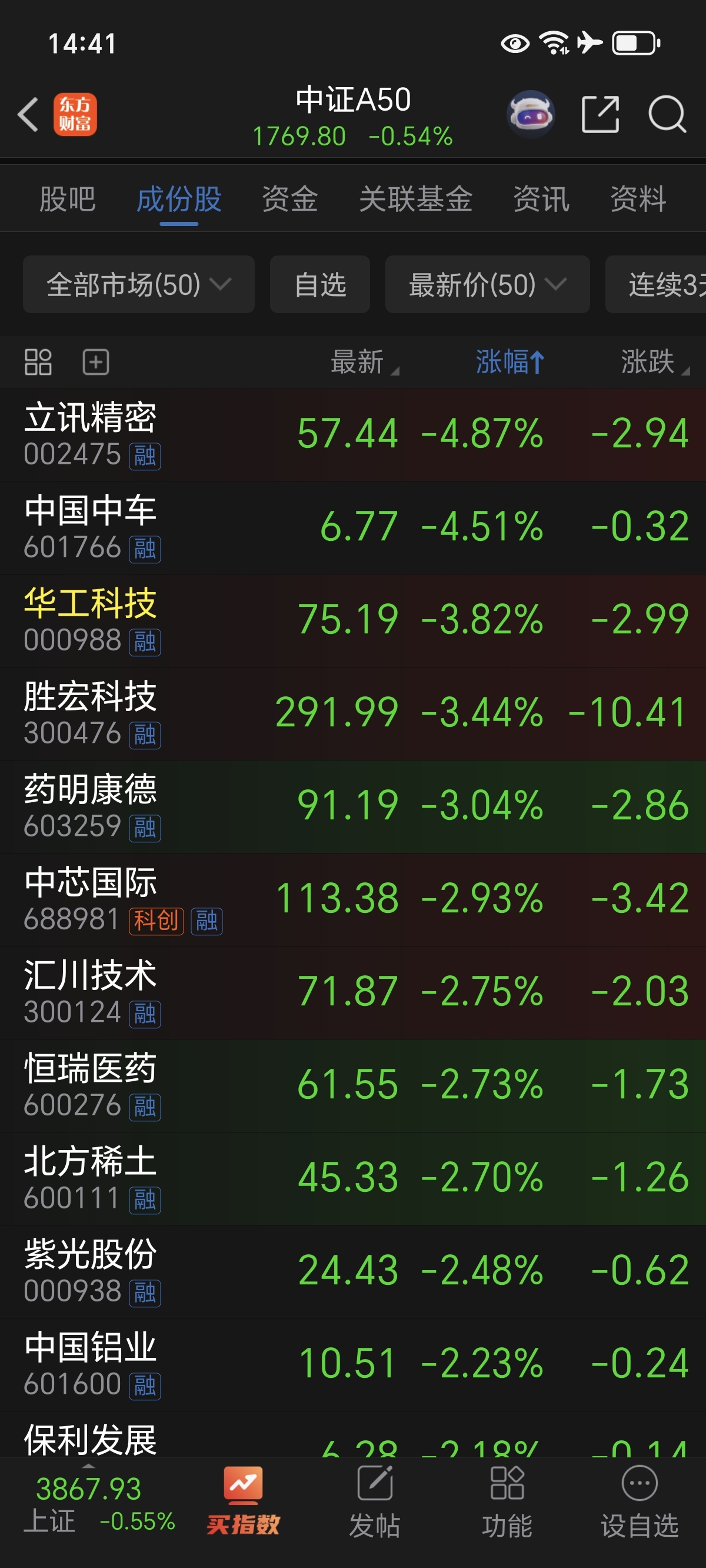 $华工科技(SZ000988)$ 今天排名倒数第三啊