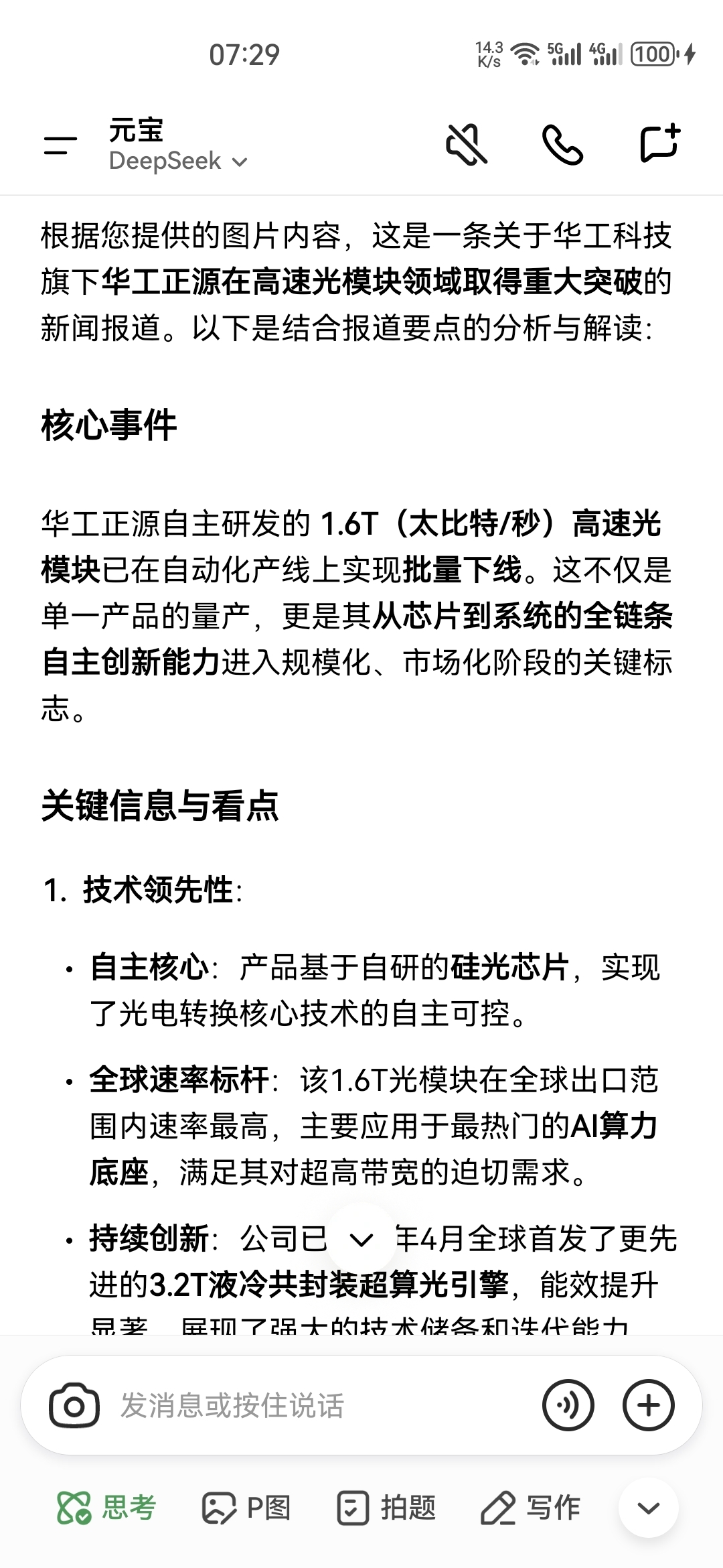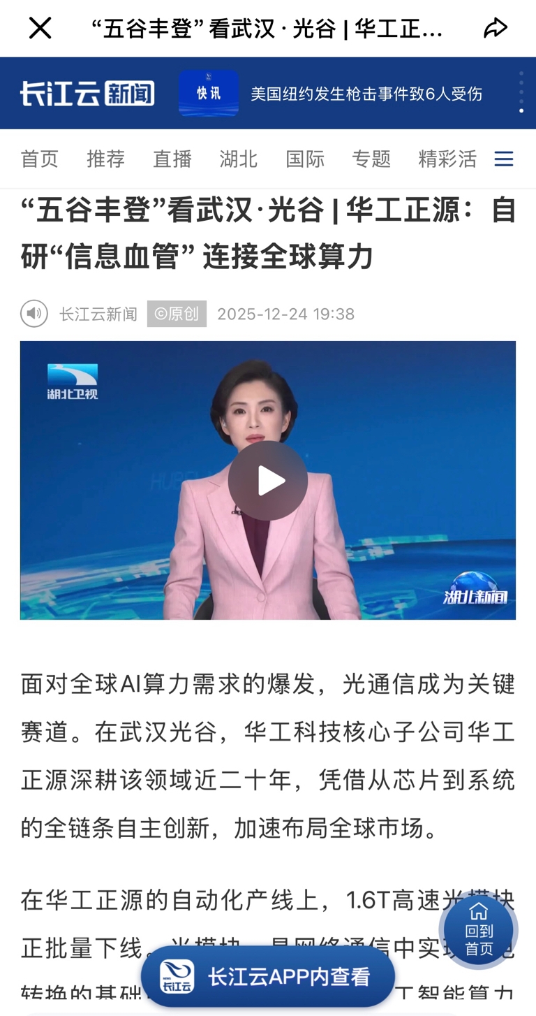 这是一个标志性事件:关于华工科技旗下华工正源在高速光模块领域取得重大突破的新闻报道。以下是结合报道要点的分析与解读: