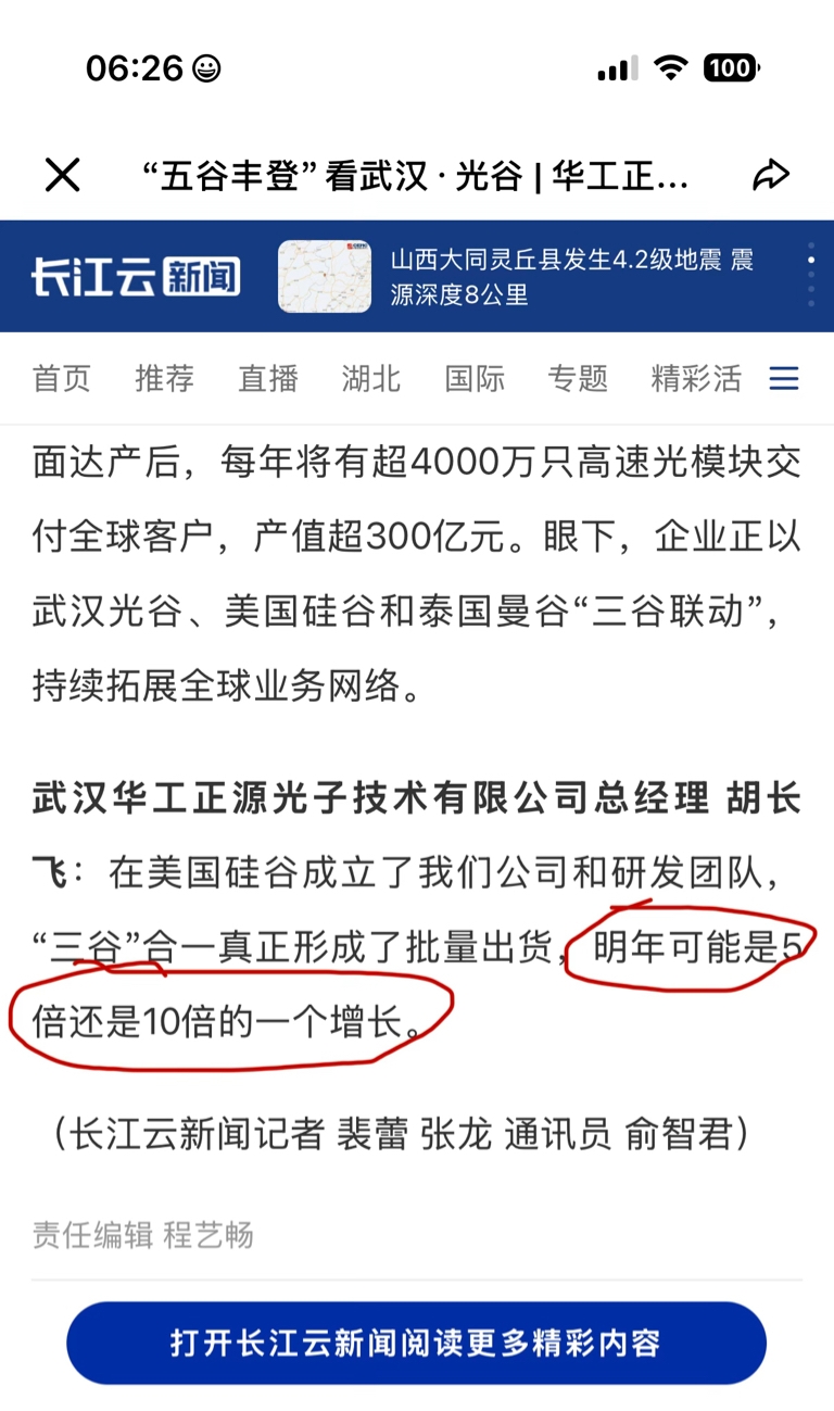 $华工科技(SZ000988)$ 这是一个标志性事件:关于华工科技旗下华工正源在高速光模块领域取得重大突破的新闻报道。以下是结合报道要点的分析与解读: