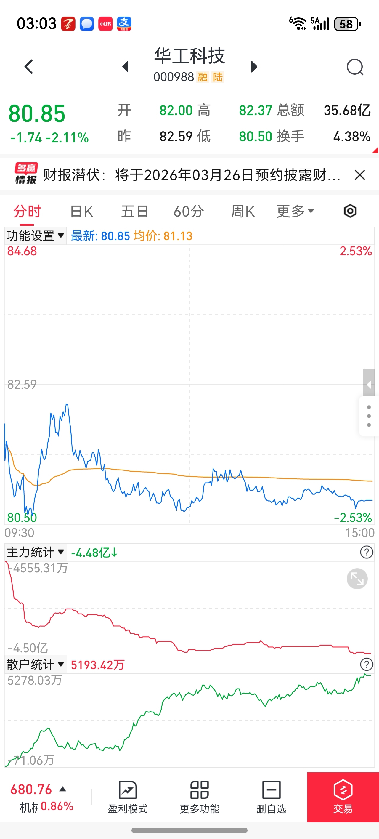 $华工科技(SZ000988)$ 散户拼命进来抄底,主力大量出货,天天如此