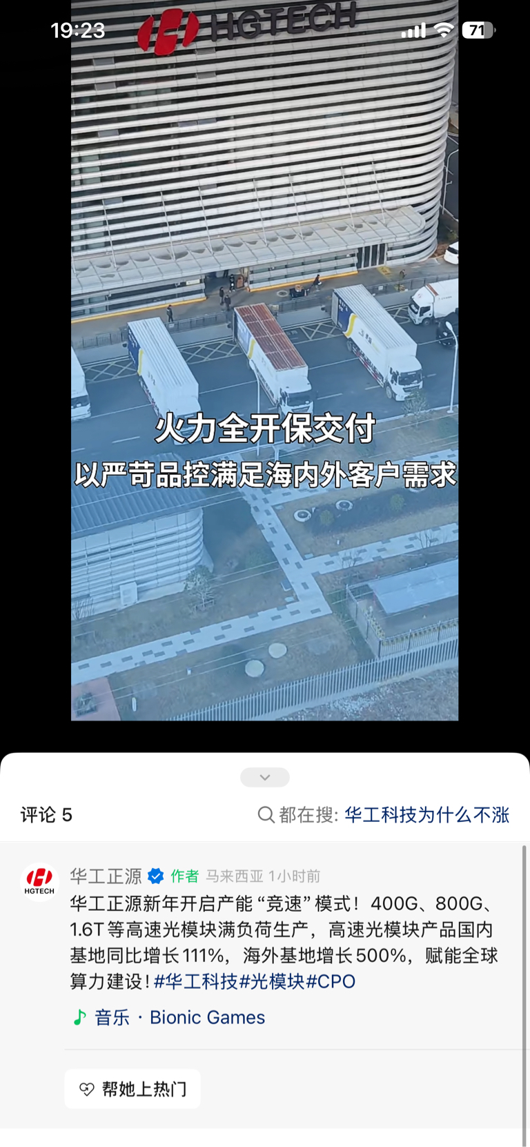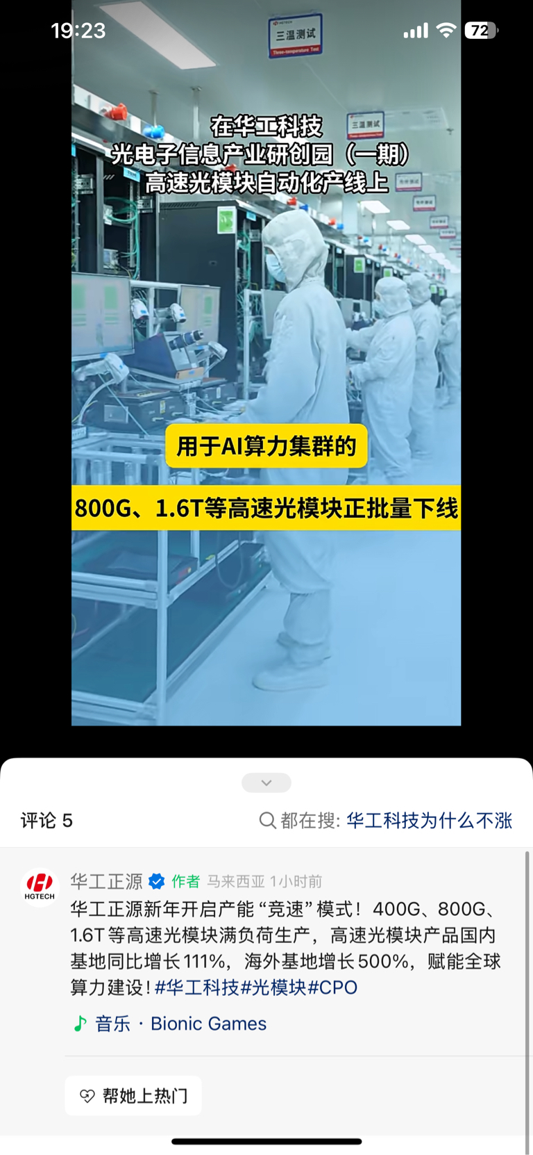 $华工科技(SZ000988)$ 华工科技产能满负荷运行,国内增长111%,国外增长500%,这对2026年的利润来说有保障