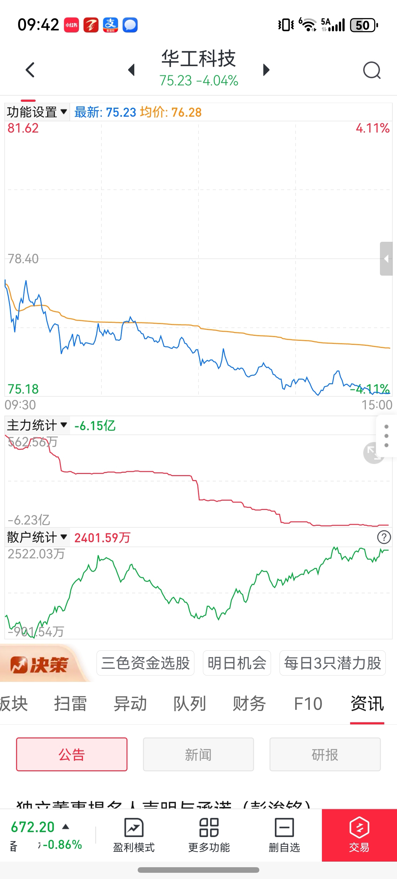 $华工科技(SZ000988)$ 今天又是散户抄底,主力出货的日子,