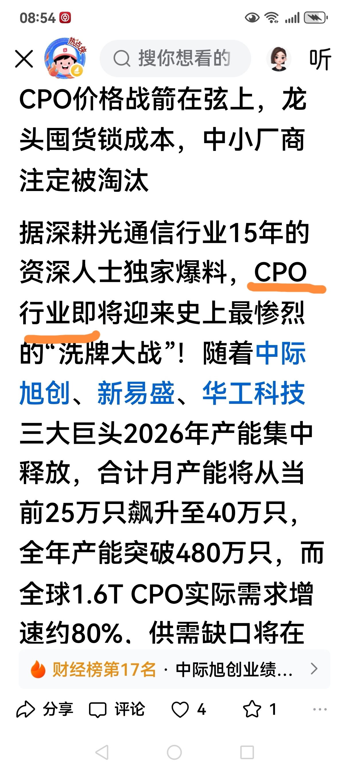 $华工科技(SZ000988)$ CPO行业后起之秀!2026年华工将成行业三巨头之一。