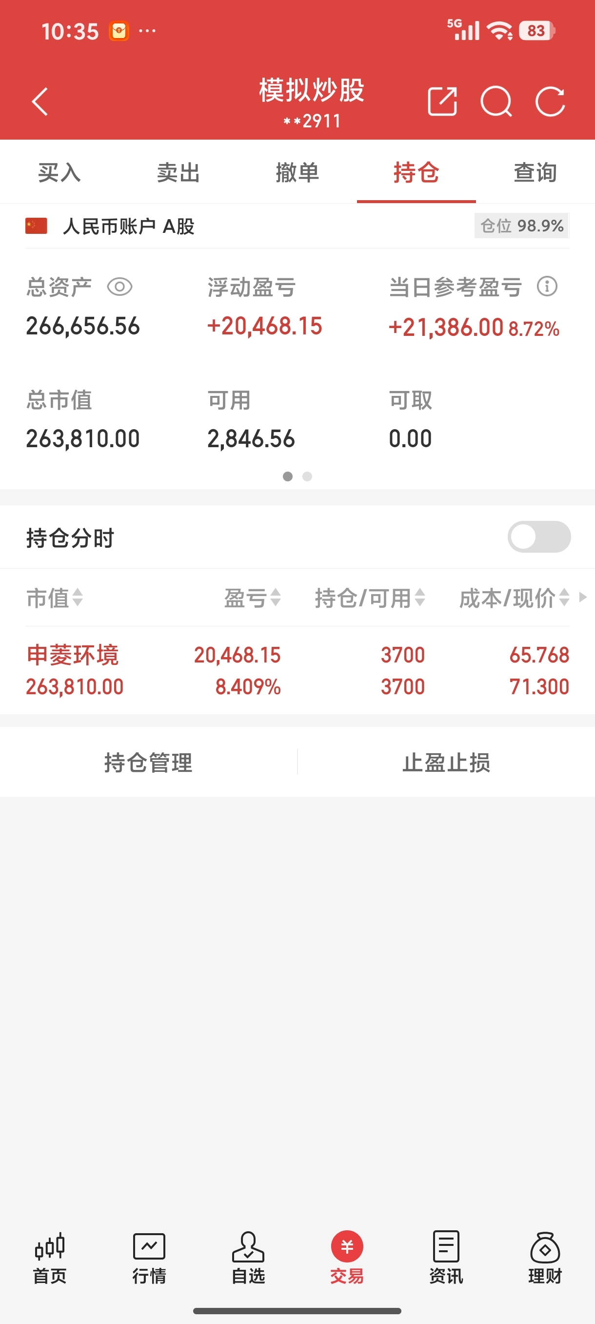 同样是上周五买的,模拟盘买了申菱环境,现在赚了8个多点;实盘买了华工科技,现在亏