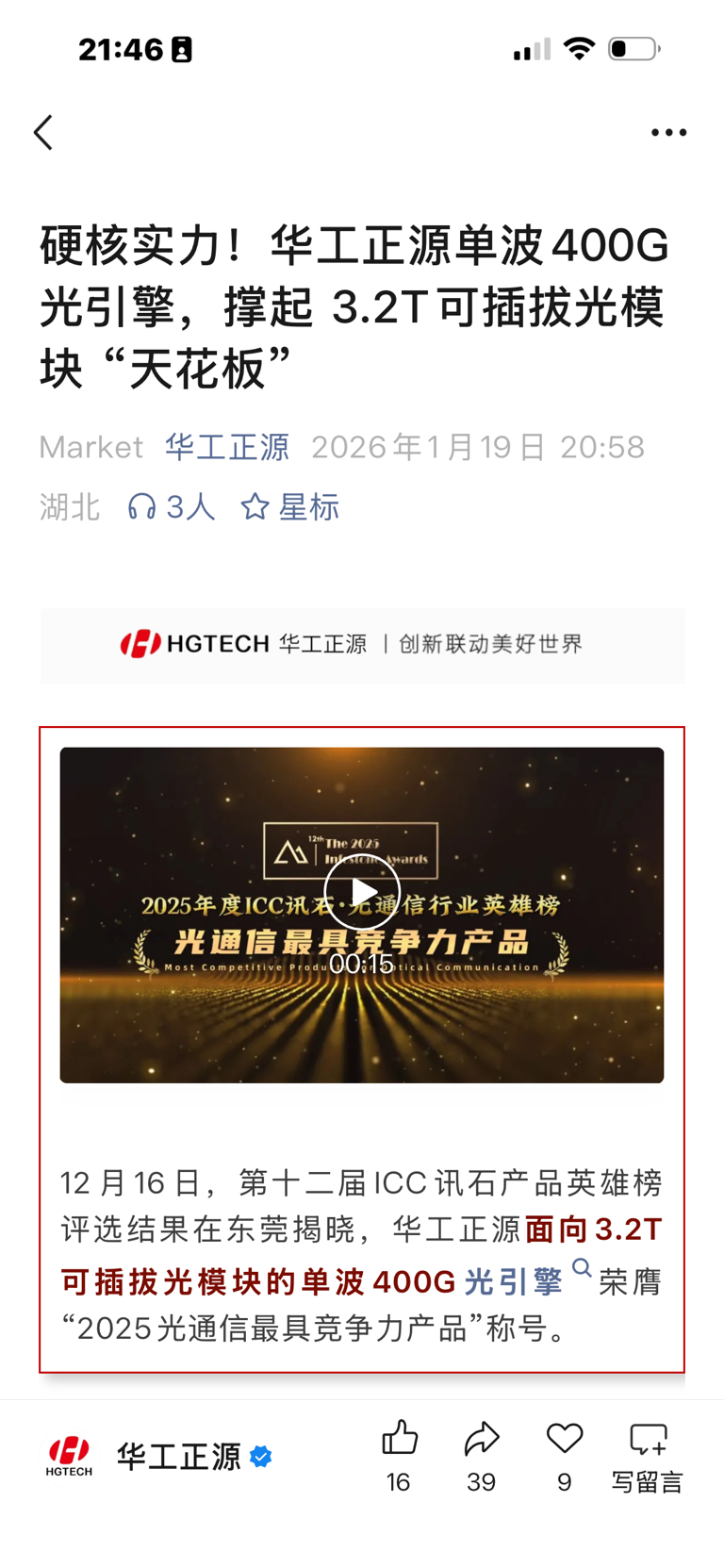 $华工科技(SZ000988)$ 2024年各季度归母净利润增长率分别为:一5.2%、7.9%、15%、21%,四季度高于各季度,证明是旺季。而2025年前三季度分别为40%、45%、41%,在2024年四季度最高增长基础上又实现大增,并且各季度增长都在40%以上,那么2025年四季度会是多少呢?2025年是十四五收官之年,公司业绩出色已经是板上钉钉子的事实了,关健看怎么做帐的问题了!作为国企,最讲政治,所以明白人稍微动一下脑子就会知道2025年全年净利润增长率不会低于40%,这样才能实现完美收官。至于2026年,不管一季度增长好坏,但全年一定会远远高于40% (按照目前各种信息分析,理论上应该在6 0%以上),否则怎么实现十五五中期销售目标500亿的梦想呢?(2025年前三季度为117亿,不出意外全年应该在160亿左右)。很快又要召开全国两会了,马总会不会再次亮相?2026年会不会“马”到成功?相信有千万双眼睛都象饿狼一样紧紧盯着筹码,对公司报有极大预期。前有标杆,后有来者。我不敢说公司一定会成为2025年的$中际旭创(SZ300308)$ $新易盛(SZ300502)$ 但是一定会是一颗璀璨耀眼的星!